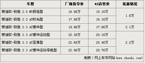 蒙迪歐-致勝最高降2.2萬 最低售15.18萬
