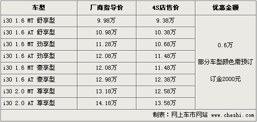 北京現代i30在9月份正式上市,源自歐洲設計風格的i30在外觀上非常時尚,2.65米的車身軸距足以滿足普通家庭需要,內飾方面表現中規中矩,是一款典型的家庭經濟型轎車。根據網上車市價格監測系統顯示,北京現代i30現優惠現金6千元,部分車型需預訂。具體車型價格行情如下: