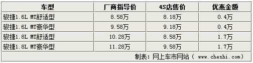 據北京地區華晨中華汽車4S店銷售人員介紹,駿捷1.8L目前現車都比較齊全,而且優惠幅度較大,維持在1.7萬元左右。同時購買駿捷1.6L車型也可優惠現金4000元,相當的超值。另外,如果到店詳談,還可以贈送部分裝飾。