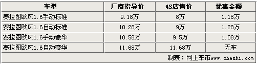 東風(fēng)悅達(dá)起亞旗下的首款兩廂轎車(chē)—賽拉圖歐風(fēng),憑借著歐洲車(chē)型的設(shè)計(jì)理念和圓潤(rùn)飽滿的外形,得到消費(fèi)者的關(guān)注。近日記者了解到:賽拉圖歐風(fēng)將推出1.5排量車(chē)型,屆時(shí)1.6車(chē)型將全部停產(chǎn)。根據(jù)網(wǎng)上車(chē)市價(jià)格監(jiān)測(cè)系統(tǒng)顯示,目前銷(xiāo)售的賽拉圖歐風(fēng)最高優(yōu)惠1.3萬(wàn)元。具體車(chē)型見(jiàn)下表: