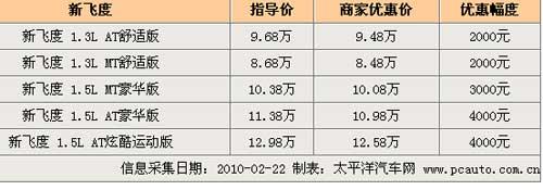節(jié)日的喜慶氣氛慢慢退去,但車市的火爆程度卻依舊。近日筆者從北京地區(qū)廣汽本田4S店獲悉,飛度車型目前仍然貨源緊缺,現(xiàn)在預定最高可享受4000元的優(yōu)惠,詳細價格見下表:
