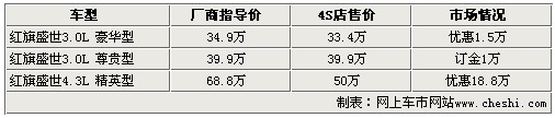 紅旗盛世最高降幅近19萬元 售價33萬元起