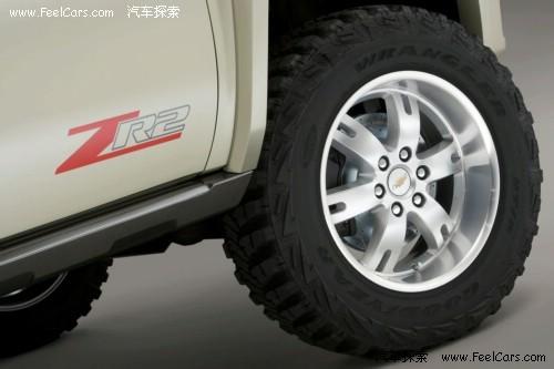 在動力方面,雪佛蘭Silverado ZR2概念車搭載了來自通用的LS supercharged V8發動機,最大功率可達550hp。另外,20英寸的Goodyear Wrangler MT/R輪胎,使新車擁有超強的越野性能。(謝恒杰)