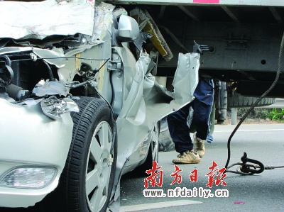 比亞迪轎車上的林先生告訴記者,他們是廣東湛江人,昨天他帶著女朋友和親戚乘坐侄子的小車回老家準備結婚。沒想到侄子脾氣不太好,看到貨車司機在前邊的快車道上不急不慢地行駛,一時急于超車,結果不小心發生了撞車,侄子的眉骨被撞裂,傷勢稍微嚴重一些,其他人則是不同程度的輕傷。