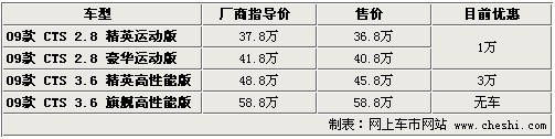 據(jù)4S店銷售人員介紹:目前在售的凱迪拉克09款CTS共有2.8L和3.6L兩個排量車型。這4款車型目前優(yōu)惠幅度較小,最高優(yōu)惠3萬元。2.8L車型目前優(yōu)惠1萬元,3.6升精英版優(yōu)惠3萬元,頂配車型無現(xiàn)車。由于CTS在凱迪拉克系列中不是主打車型,所以優(yōu)惠幅度較小,也與其進(jìn)口車型有關(guān)。如果您對此款車感興趣,請及時與店內(nèi)聯(lián)系。