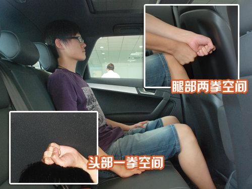 測試者座椅調整合適以后,正常坐姿時頭部有一個拳位余量,腿部活動自由,沒有特別拘束的感覺;后排空間表現正常;測試者正常坐姿下,腿部空間表現很好,有兩個拳位余量,頭部表現尚可,有一拳空間,測試者沒有壓迫感。(測試者身高178CM)