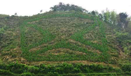 從圖上可以看出,一面數(shù)千平米的山坡上,數(shù)千棵樹木排列成奇怪而規(guī)則的圖案——一個規(guī)則的方框內(nèi)三個獨(dú)立的小三角,將空間劃分開來,看線條,極似“X”,與旁邊野生的樹木形成鮮明對比。初步判斷,“神秘林”絕非天然形成。據(jù)當(dāng)?shù)厝罕姺从常衩貥潢嚨乃诘卮_實(shí)是在武功山,處于安福縣北側(cè)的北華山附近。樹林是幾天前出現(xiàn)的,但為什么是這個圖案,當(dāng)?shù)厝税偎疾坏闷浣狻!霸瓉聿]有相似的事情發(fā)生”一位李姓村民說道,“最近大家都開始議論這是不是所謂的麥田怪圈!”