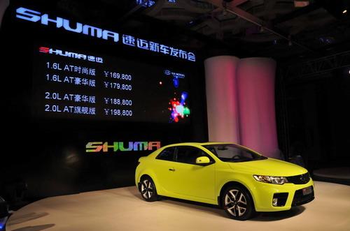 1月21日,進口起亞首款雙門轎跑車SHUMA(速邁)正式上市,共推出1.6L和2.0L兩款CVVT技術發動機的車型,多達9種色彩,價格區間從16.98萬-19.88萬元。預計本月底樣車將可到店,預訂需要交5000元-1萬元訂金。