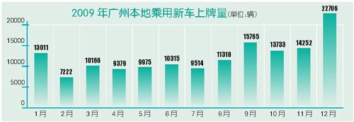 數(shù)據(jù)顯示,去年12月份廣州單月新車上牌量為22706輛,同比增幅達(dá)到全年銷量的最高點(diǎn),日均上牌乘用車新車732輛。2009年最后一個(gè)月車市的火爆為廣州2009年全年乘用新車上牌量畫上了圓滿的句號(hào),同時(shí)也帶動(dòng)了廣東省新車銷量創(chuàng)下“新高”——當(dāng)月以96352輛的成績(jī)創(chuàng)造了全年單月乘用新車上牌量的新紀(jì)錄。據(jù)悉,深圳、東莞、佛山等地的全年銷量最高點(diǎn)均出現(xiàn)在12月份。