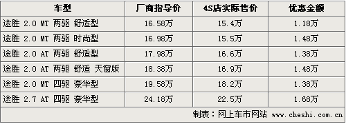 筆者從北京現(xiàn)代北京地區(qū)經(jīng)銷商處了解到,目前購買途勝系列,其全系價(jià)格有一定幅度的變化,優(yōu)惠金額從1.18萬元-1.68萬元不等。同時(shí)4S店還將贈(zèng)送價(jià)格5000元油卡。現(xiàn)車方面,入門級(jí)手動(dòng)檔車型沒有現(xiàn)車供應(yīng),需要消費(fèi)者預(yù)訂,其他自動(dòng)檔車型有部分可供選擇。