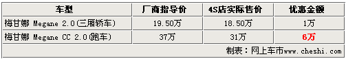與雪鐵龍、標致同為法系知名汽車制造商的雷諾,以進口方式引進國內的車型有風景、梅甘娜以及拉古娜等多款車型。其中梅甘娜車型分為三廂版本和跑車兩個版本。近日根據網上車市價格檢測系統顯示,梅甘娜全系車型均出現了價格松動,三廂普通版車型可優惠1萬元,而跑車版梅甘娜的優惠幅度達到6萬具體車型售價見下表:
