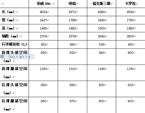 綜合以上幾方面空間的比較,表現最出色的當屬榮威550?磥碇懈呒夀I車中的大型化風潮已經快速在向中級轎車市場延伸。今年上市的熱門新車:悅動、新凱越及榮威550都在空間上對比傳統中級轎車有了明顯的提升。面對中級轎車快速“增肥”的體型,恐怕不少傳統中高級轎車都會感受到越來越大的壓力了。