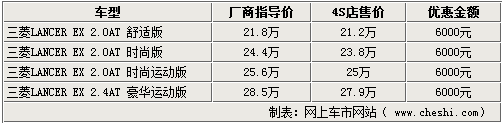 以純進口車身份銷售的三菱LANCER EX憑借尚佳的質量及性能受到消費者喜愛,但因制動缺陷導致召回又在消費者心中埋下了陰影。據網上車市網站了解,北京各家進口三菱經銷商處新車銷售未受影響,全系可給出6000元優惠,除舒適車型以外,各款車型均有足夠現車可滿足廣大消費者的購車需求。詳情如下:
