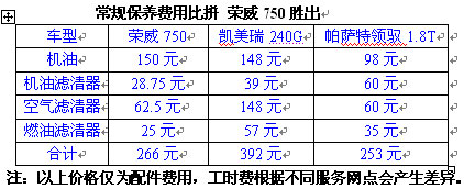 僅從配件的費(fèi)用來(lái)看,帕薩特領(lǐng)馭1.8T和榮威750的價(jià)格優(yōu)勢(shì)明顯,考慮到上海大眾保養(yǎng)工時(shí)收費(fèi)較高,綜合看來(lái),榮威750使用3年在保養(yǎng)費(fèi)用的支出上最具優(yōu)勢(shì),而凱美瑞240G不但配件價(jià)格昂貴,據(jù)了解保養(yǎng)一次的工時(shí)收費(fèi)在200元左右,是三款車型中最貴的,日常使用成本較高。