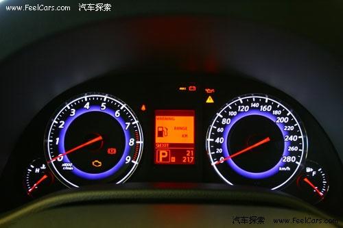 與強大發動機配合的,是一款7速手自一體變速箱。不但可以通過變速桿控制換檔的,還可以通過方向盤上的換檔撥片控制。粗壯的三輻射多功能方向盤上的按鈕可以控制導航、音響和電話等功能。顏色鮮艷的儀表盤提供了不錯的視覺效果,而導航系統和空調出風口的設計與目前國產的天籟公爵十分相似。