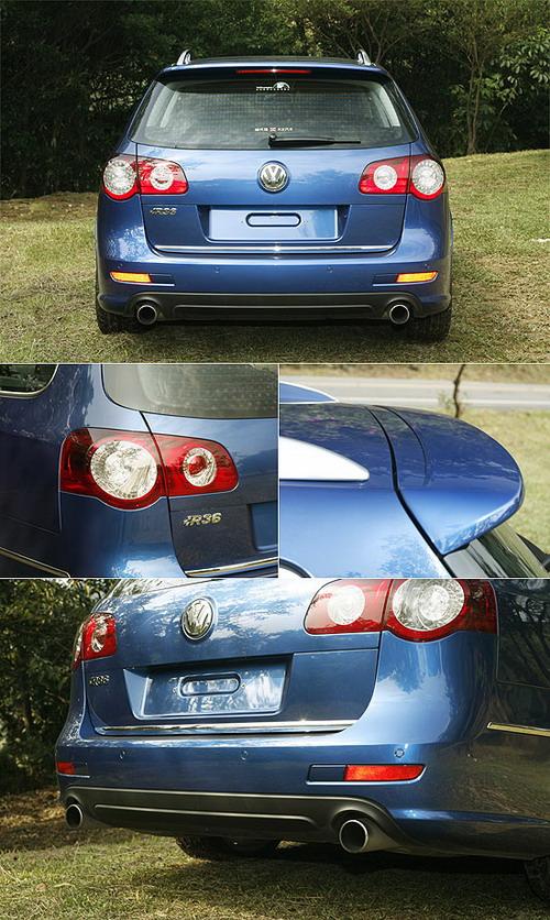 在營造性能氣息上,原廠為R36裝上面積加大的車頂擾流尾翼,以提供后輪足額的下壓力道;而在車尾下部,黑色塑料導流板與左右雙出不銹鋼尾段的搭配,同樣表明R36不容小覷的本性。