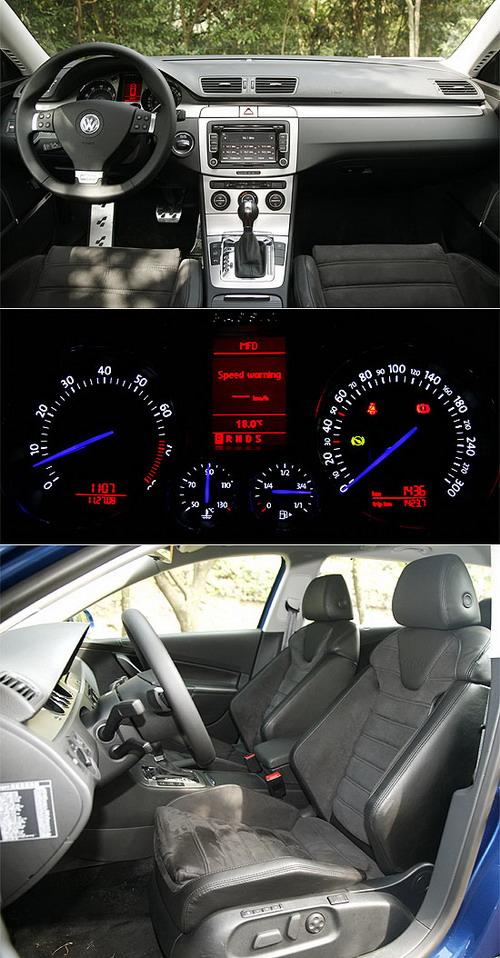 R36的內飾設計,仍提供駕駛與乘員相當豐富的感官。維持車系有條不紊的簡約風格,R36車室內已不見任何一絲木紋飾板;取而代之的則是完整的T字型金屬飾板,以縱橫之勢鋪陳其中。少了分豪華,科技與性能質感卻油然而生。儀表板部份,過去大眾慣用的紅色指針,在R36身上想當然地換上了湛藍樣式;搭配白色字樣的刻度顯示,確實帶給駕駛員一番截然不同的性能風味。