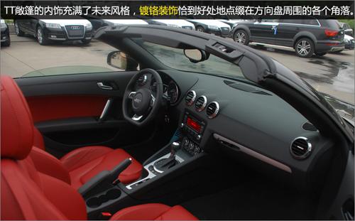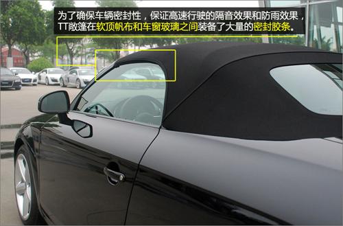 TT 敞篷采用的是軟頂,而并未隨大趨勢使用電折硬頂,軟篷的收折及儲(chǔ)存均比硬頂富彈性,優(yōu)點(diǎn)是無須占用車尾大量空間,篷身可選擇不同顏色,配搭出更多變化的視覺效果。而且,奧迪TT 敞篷采用的多層布制軟篷有優(yōu)秀的隔音效果,不必?fù)?dān)心高速行駛時(shí)會(huì)有巨大的風(fēng)噪。