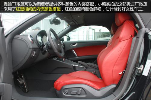 奧迪TT敞篷可以為消費(fèi)者提供多種顏色的內(nèi)飾搭配,這次我們到店實(shí)拍的這臺(tái)TT敞篷采用了紅黑相間的內(nèi)飾顏色搭配,紅色的座椅顏色鮮艷,估計(jì)很能討好女性車主的歡心。