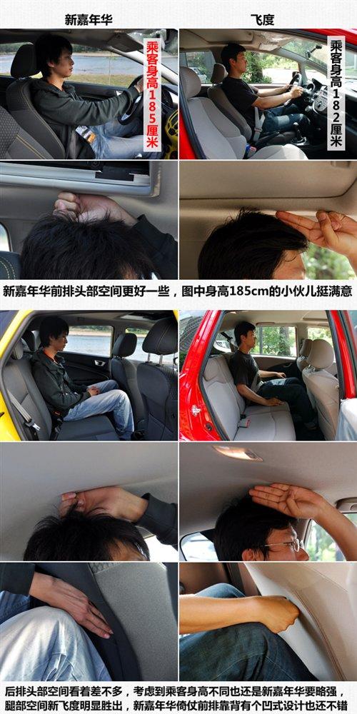 以亞洲人的身高來看,兩款車型的頭部空間都屬于夠用級別。其中新嘉年華要略好一些,至少我們圖上那位身高185cm的小伙兒就沒覺得有什么壓抑的感覺。而飛度車內(nèi)的乘客身高為182cm,頭部空間的余量顯然不如新嘉年華。