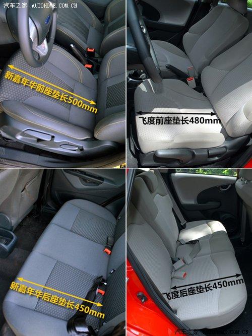 值得稱道的是新嘉年華的前排座椅,椅形設(shè)計得很不錯,包裹性和支撐性比較到位,而且前座墊的長度達(dá)到了500mm,超過了一般的小型車水平,而飛度的前座墊只有480mm。后排座墊兩者則一個水平,均為450mm。