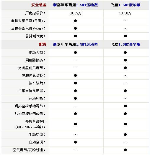 因為飛度的車型相對較少,因此我們只拿1.3MT、1.5MT以及1.5AT來與價格相當的新嘉年華做個比較,而價格高達12.98萬元的炫酷運動版恐怕少有人問津,也就沒有什么可比性。