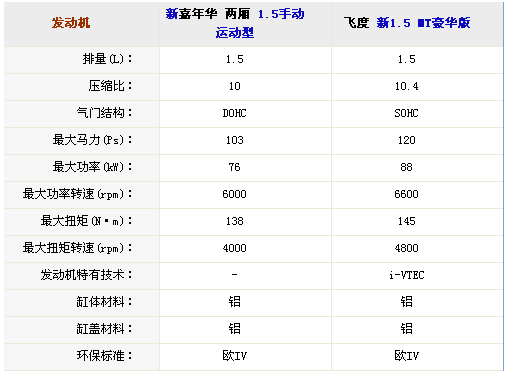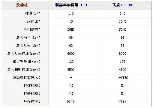 前面已經說過,新嘉年華和飛度都是1.3和1.5兩個排量,如果只看發動機參數的話,那飛度顯然要強出太多了。先來看1.3排量,飛度多出13馬力和4N·m。1.5升發動機則差得更多,飛度比新嘉年華高出17馬力和7N·m。盡管參數上不具備優勢,但是新嘉年華針對城市游弋的特征要更加明顯,最大扭矩到來的比飛度要早很多,尤其是1.3升車型,兩者最大扭矩輸出轉速相差了1300轉之多。