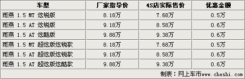 據(jù)長(zhǎng)安鈴木4S店銷售人員介紹,雨燕目前現(xiàn)車比較充足, 1.5L雨燕車型在北京最高可給出6000元的優(yōu)惠,相比前一陣優(yōu)惠金額增加500元。另外,倍受關(guān)注的雙色版雨燕目前的價(jià)格仍然沒(méi)有變化,并且均為訂單銷售,各店沒(méi)有現(xiàn)車。若想購(gòu)買(mǎi)需要提前預(yù)訂,訂金2000元,四周后提車。