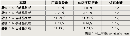 目前北京地區(qū)斯柯達(dá)店的晶銳車源比較充足,購(gòu)買(mǎi)晶銳車型的消費(fèi)者在可以得到1000元現(xiàn)金優(yōu)惠的同時(shí),還可以得到商家贈(zèng)送的汽車裝飾。銷售人員還表示,1.4部分車型需要提前預(yù)訂,預(yù)訂周期大約在最短2周到最長(zhǎng)8周不等。