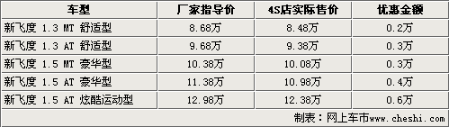 據(jù)廣州本田北京地區(qū)4S店銷售人員介紹,新飛度全系的優(yōu)惠金額與前一陣相比基本沒(méi)變,不過(guò)新飛度 1.5L炫酷運(yùn)動(dòng)版的優(yōu)惠金額上漲到了6000元。新飛度在售車型分為1.3L及1.5L共5個(gè)車型在售,1.3L手動(dòng)舒適版的優(yōu)惠金額仍為2000元,現(xiàn)售價(jià)為8.48萬(wàn)元。1.3L自動(dòng)舒適版的優(yōu)惠金額為3000元,現(xiàn)售價(jià)為9.38萬(wàn)元。1.5L豪華版的手動(dòng)和自動(dòng)車型經(jīng)4000元優(yōu)惠后,現(xiàn)售價(jià)分別為10.08萬(wàn)元和10.98萬(wàn)元,1.5L炫酷運(yùn)動(dòng)版的優(yōu)惠從5000元上漲到了6000元,現(xiàn)售價(jià)為12.38萬(wàn)元。