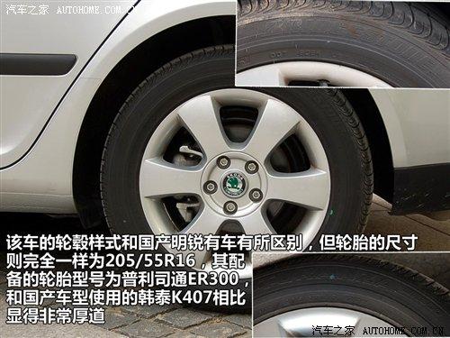 該車的輪轂造型和國(guó)產(chǎn)明銳有所區(qū)別,雖然尺寸一樣,但視覺(jué)上還是國(guó)產(chǎn)車型配備的輪轂看上去更大,也更漂亮。輪胎采用的是205/55R16的是普利司通ER300。和國(guó)產(chǎn)車型采用的韓泰K407輪胎相比好太多了,相信很多國(guó)產(chǎn)明銳車主看到這里都在暗自羨慕。
