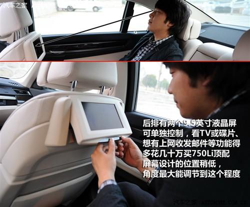 小桌板的問(wèn)題也是一樣,“孟老板”認(rèn)為沒(méi)有小桌板不應(yīng)該,他只能把筆記本電腦放在腿上,換作是我就寧可放在腿上,因?yàn)楦`活,小桌板往往不實(shí)用還占空間,而且車(chē)上用電腦畢竟是短時(shí)間的,時(shí)間長(zhǎng)了別說(shuō)腿受不了電池也經(jīng)不住啊。740Li前排靠背頭枕下方在背面為后排乘客安裝了兩個(gè)液晶屏,能享受到看電視聽(tīng)音樂(lè)這一類(lèi)的服務(wù),實(shí)際上可以有更強(qiáng)的功能,只不過(guò)要想上網(wǎng)收發(fā)郵件之類(lèi)的就得多花幾十萬(wàn)買(mǎi)750Li頂配車(chē)型。