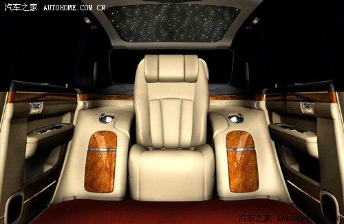 在車內,也同樣是勞斯萊斯幻影的風格:前后排隔離玻璃、羊毛地毯以及星空頂篷等,同樣給人非常豪華的感覺。另外,我們注意到,車內的后排只有一個座椅,彰顯了后排乘客的尊貴性。在后排座椅的兩側有吧臺和冰箱,而在車門內側還有專門放雪茄的儲藏格。