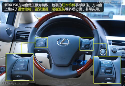 新RX350方向盤做工極為精致,包裹的木質飾件手感極佳。方向盤上集成了語音控制、藍牙通話、定速巡航等多項功能,非常實用。
