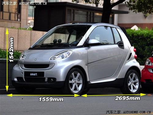 我們都知道smart很小,到底能小到什么份上?看看參數就知道了……09款smart的三圍尺寸為2695x1559x1542mm(長x寬x高),如果拿一款大家都熟悉的中型車來打比方的話,它的長度僅比雅閣的寬度多850mm,也就是說在前者順行停車的時候,smart橫著扎進去只會露出個“小屁股”。