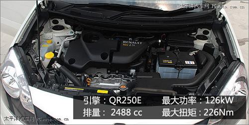作為一款銷往世界各地的車型,KOLEOS提供了豐富的動力選擇,目前有4缸2.0升低增壓和高增壓共軌柴油機以及4缸2.5升汽油機,未來還可能有V6發(fā)動機加盟,變速器可選擇6速手動、6速自動或CVT。這款型號為QR25E的汽油機是正宗的日產(chǎn)產(chǎn)品,此前它已為奇駿等車型服務多年。它采用了眼下不多見的小缸徑長行程設計,缸徑只有89mm,行程卻長達100mm,這種設計最大的好處是低速扭矩充足,尤其適合SUV。經(jīng)過重新標定的TR25特性更適合KOLEOS,它的最大功率為126kW,最大扭矩226Nm。