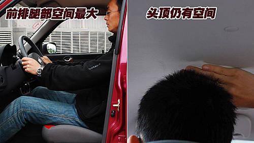 將前排座椅調到最后,雖然保證了身材高大的消費者能擁有充足的腿部空間,但偏小的坐墊對腿部支撐性不足也更加明顯。力帆320的車頂采用平頂設計,前后排的頭部空間都是一樣的。圖中的模特身高1.78米左右,可以看的出來頭部空間仍比較富裕,不會顯得很壓抑。