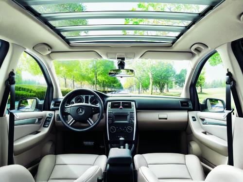 內飾方面,一貫秉承了奔馳的精良工藝和嚴肅的審美態度,轉向燈控制桿集成了雨刷器功能,定速巡航裝置也位于方向盤左側的一根小控制桿上,所以方向盤柱右側干凈利落。直立式的中控臺有些SUV車型的味道。百葉窗式大型天窗可讓前后排乘客共享陽光。