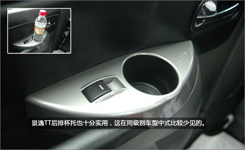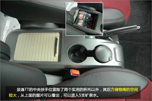 “景逸TT”全車共有38處個性儲物空間;此外,當后排座椅被放倒時,“景逸TT”的行李箱空間可從700升立刻增加至1970升,足可以滿足車主的任何需要。細節設計充分說明,景逸TT已經將人性化設計發揮到不錯的程度,每個細節都體現了設計師的用心與體貼。