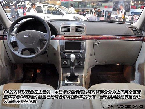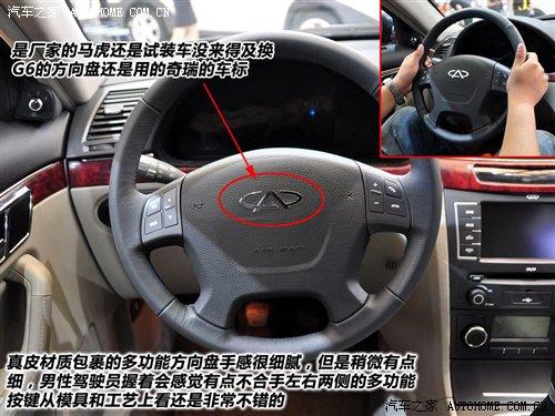 一坐進G6車內,一眼就先看到了它的一個小BUG——作為奇瑞瑞麒品牌產品的G6,既然已經有了自己新的車標,為什么方向盤上的LOGO還要用奇瑞的呢?是廠家的馬虎還是來不及換標呢?希望廠家的朋友盡早對此作出調整,現在這樣給人感覺很不好,有拼湊之嫌。不過,這個用真皮材質包裹的多功能方向盤的手感還真挺不錯的,接觸面手感比較細膩,只是作為男性駕駛員,編輯認為方向盤稍微有點細,握著有點不太合手。左右條幅上的功能按鍵從模具工藝上看還是值得肯定的。