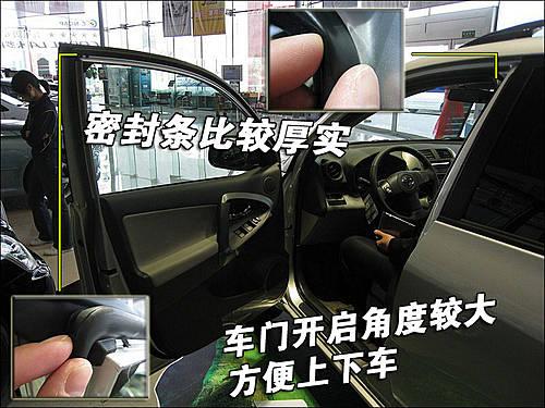 駕駛員一側(cè)車(chē)門(mén)完全打開(kāi)后車(chē)門(mén)開(kāi)啟角度很大,車(chē)身較高上下車(chē)都比較輕松。車(chē)門(mén)四周有橡膠密封條手觸感覺(jué)比較厚實(shí),與車(chē)門(mén)緊密貼合時(shí)能夠起到很好的密封隔音作用。