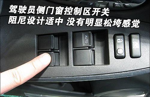 駕駛員側(cè)車(chē)門(mén)控制區(qū)集成了門(mén)窗以及中央門(mén)鎖控制鍵,整體做工十分細(xì)致,間隙均勻。使用時(shí)發(fā)現(xiàn)各按鍵的阻力適中,沒(méi)有明顯松垮的感覺(jué)。