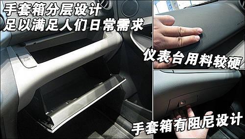 豐田國產RAV4手套箱為有阻尼設計,在打開手套箱后不會因重力而自由下落,手套箱分層設計,功能性比較強,足以滿足人們的日常需求。