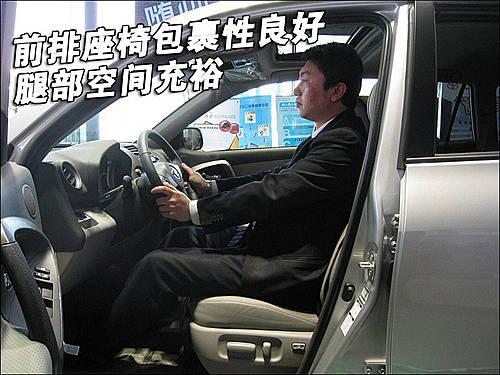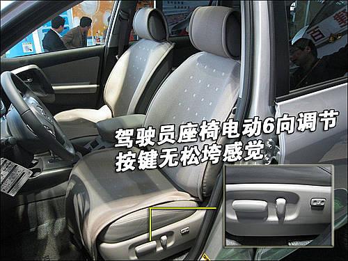豐田國產RAV4整車座椅均采用真皮材料,駕駛席座椅前后、靠背角度、座椅高度為電動調節。各按鈕四周做工較細致,無任何松垮感覺。
