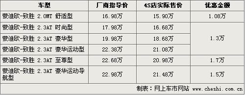 據4S店銷售人員介紹,目前,蒙迪歐致勝2.0排量車型廠家排產較少,只有個別4S店內有現車供應,現在購車的話可以優惠現金1.08萬元,2.3排量車型優惠幅度從1.3萬元到1.7萬元不等。目前4S店有黑色、灰色、藍色以及銀色等現車可供消費者選擇,選擇的空間比較大。