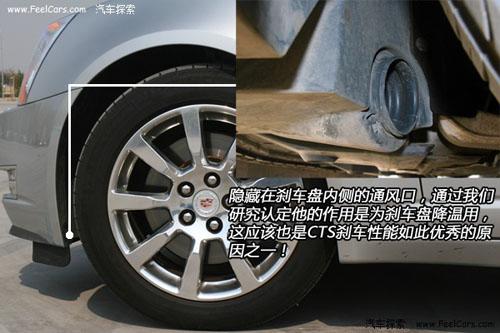 做完剎車測試,我們又對新CTS的輪胎,剎車盤片進行了仔細的觀察研究,發現在輪胎內側隱藏了一個出風口,正對著剎車盤。通過分析我們認定他的作用是對剎車盤降溫,這樣能夠讓剎車盤始終保持最佳狀態?磥硇翪TS能夠取得如此好的成績通用汽車在設計上確實下了一番苦心的!