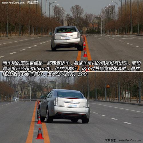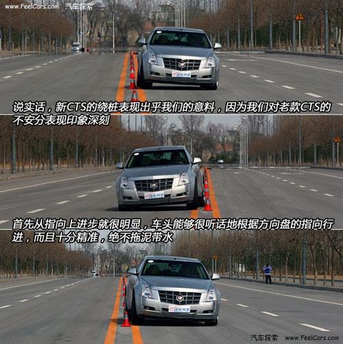 最后是最精彩的18米繞樁測(cè)試,說(shuō)實(shí)話,新CTS的繞樁表現(xiàn)大大出乎我們的意料,因?yàn)槲覀儗?duì)老款CTS的不安分表現(xiàn)現(xiàn)在還印象深刻。