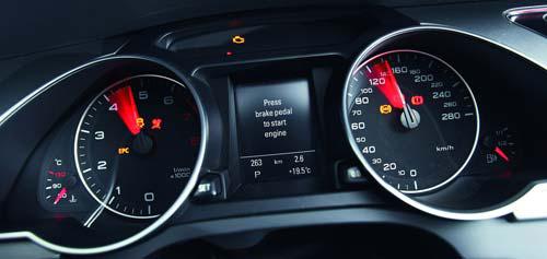 如果內(nèi)部依舊是老奧迪風(fēng)格的話那就有些對不住這么風(fēng)情萬種的外形了。當(dāng)然,這也不是奧迪的性格。內(nèi)飾一如既往地高品質(zhì),亞光的按鈕和銀色的配飾營造出了奧迪式的運(yùn)動感。用手輕撫著細(xì)膩的內(nèi)飾件,一種滿足感油然而生。點(diǎn)火按鈕就在右手食指下,輕按兩下,儀表上兩只紅色的指針迅速擺動,它們在挑逗著你的交感神經(jīng)。來吧,再次按下點(diǎn)火按鈕,車頭那臺縱置的3.2升V6發(fā)動機(jī)蘇醒了。