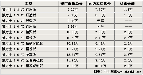 據4S店銷售人員介紹,目前廣州豐田各4S店內雅力士1.3L現車較少,而1.6排量的車型就相對比較充足,并可提供試乘試駕服務,消費者可在展廳內近距離接觸展車、親身體驗試駕車后直接購買現車。銷售人員表示,現在到店購買雅力士的消費者可享受到最達2.5萬的價格優惠,還可得到商家贈送的簡單裝飾等。