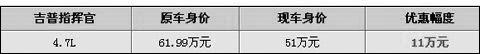 市場情況:在4月底的時候,北京吉普指揮官的讓利幅度達到4萬元,但是似乎并未吸引太多的消費者。隨著金融危機的蔓延及商家促銷心理的膨脹,這款車型再次出現(xiàn)一個讓利高峰,幅度高達10萬余元。雖然這款車型并不屬于主流的越野車,但是其知名度和口碑還是頗值得信任,而51萬元的車身價想必確實能大大激發(fā)消費者的購買欲,性價比甚高。